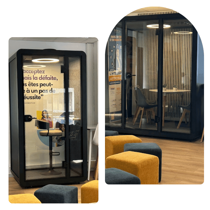 Pour garantir votre concentration, Beforma a équipé son campus de deux box individuels et insonorisés. Ces cabines sont parfaites pour vos appels téléphoniques confidentiels ou pour suivre un cours à distance en toute tranquillité.